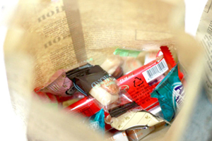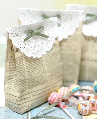 Bước 6: Gập đôi giấy ren trang trí đĩa và dán lên để che miệng túi.