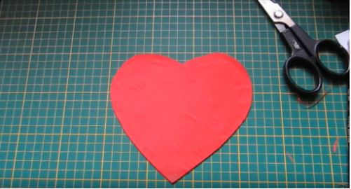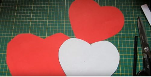 Đầu tiên các bạn hãy cắt bìa carton thành 2 hình trái tím có kích thước giống nhau và 1 hình trái tim có kích thước lớn hơn một chút