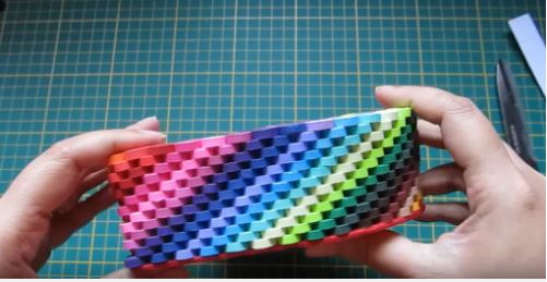 Các bạn gắn các lớp giấy xoắn tiếp theo và vẫn theo thứ tự màu như ban đâu nhưng bạn hãy dán so le nhau một chút để tạo hiệu ứng cầu vồng như hình nhé.