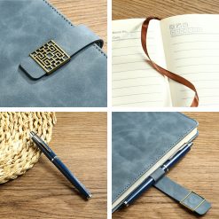 Sổ bìa da cao cấp 200 trang, giấy dày định lượng 80gsm. Sổ có dây đánh dấu trang và gài bút.